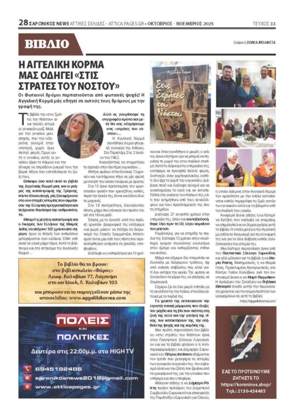 Παρουσίαση βιβλίου στον Πολιτιστικό Σύλλογο Σαρωνίδας